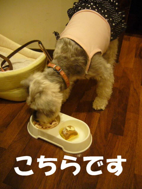 後で飼い主に聞いたところ、ささみとかぼちゃケーキだったそうでつ。